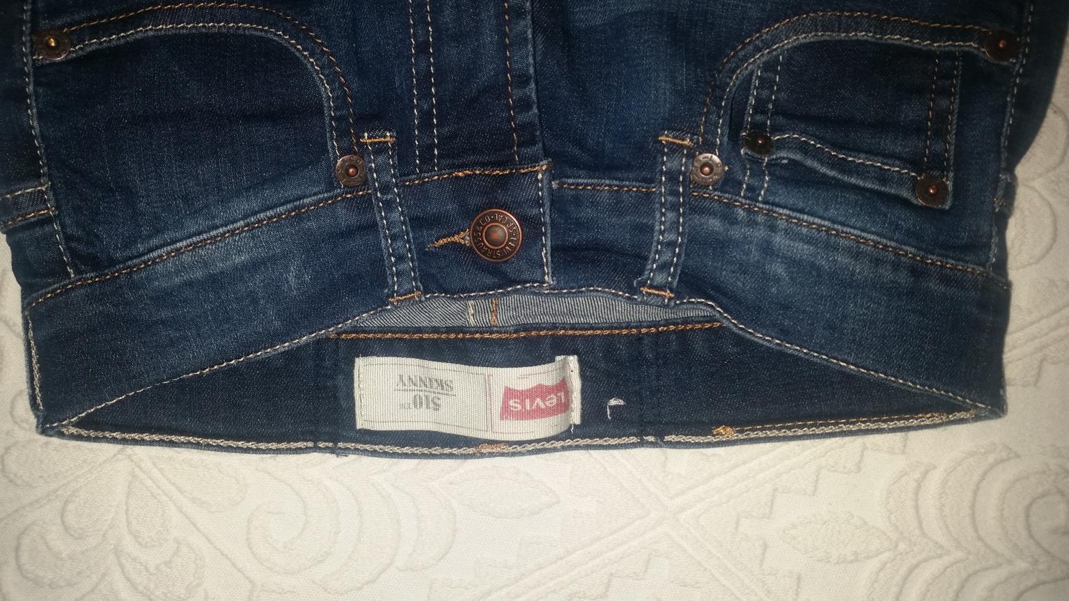 El nombre de la marca se escribió en mayúsculas en el logotipo de levis. . El arco del «murciélago» es en realidad una puntada en el bolsillo trasero.